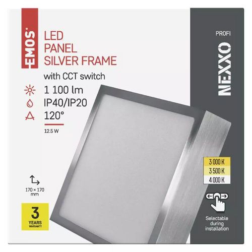 Plafoniera LED NEXXO, kwadratowa, srebrna, 12,5 W, z regulacją CCT