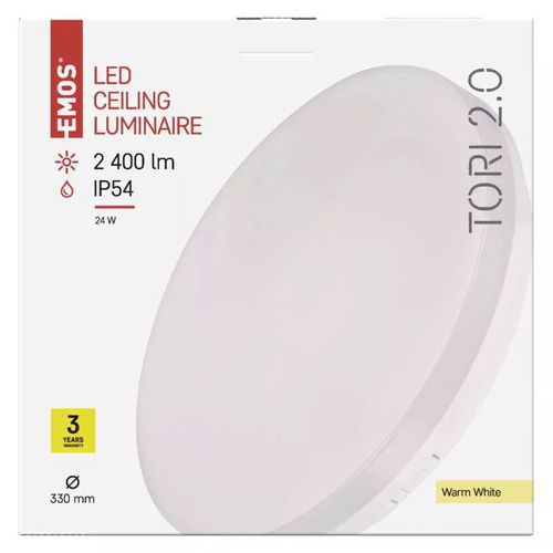 Plafoniera LED TORI, okrągła, 24 W, ciepła biel, IP54