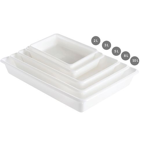 Uniwersalny płaski pojemnik do przechowywania żywności: do przygotowania, marynowania, dekantowania, rozmrażania, przechowywania próbek kontrolnych itp. Specjalnie zaprojektowany dla przemysłu spożywczego. Bardzo kompaktowy do przechowywania na pusto. Idealny rozmiar do lodówek. Chłodzone/mrożone Gwarancja producenta dla klienta : 3 lata