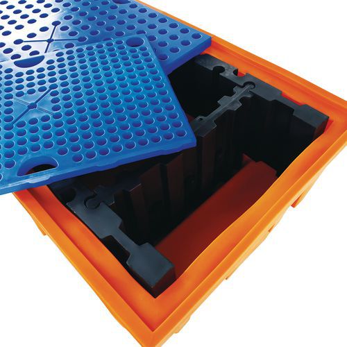 Plastikowa wanna ociekowa Manutan Expert, pojemność 1650 l, z plastikowym rusztem Plastikowa wanna ociekowa Manutan Expert, pojemność 1650 l, z plastikowym rusztem
