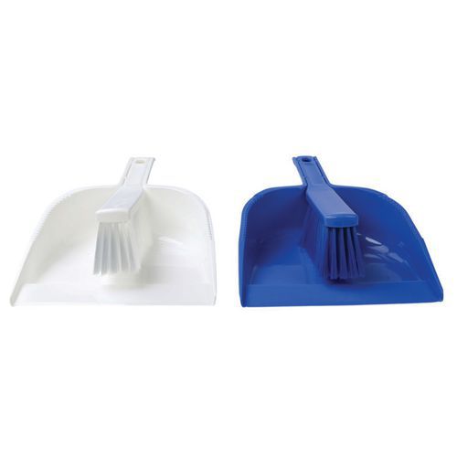 Zestaw plastikowej szufelki i zmiotki do szybkiego sprzątania powierzchni. Wykonane z polipropylenu, włókna zmiotki z poliestru. System HACCP