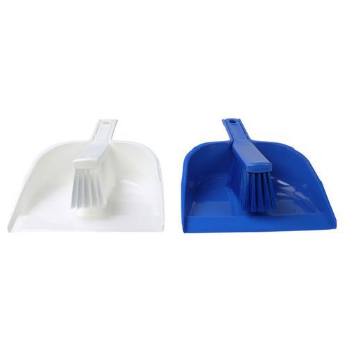 Zestaw plastikowej szufelki i zmiotki do szybkiego sprzątania powierzchni. Wykonane z polipropylenu, włókna zmiotki z poliestru. System HACCP