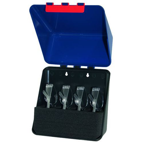 Plastikowe etui na okulary ochronne w kolorze niebieskim