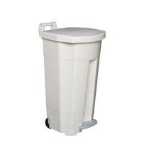 Plastikowe kosze w wariancie białym, z kolorowymi pokrywami, do łatwej segregacji odpadów. Nadają się do przemysłu spożywczego, spełniają wymagania normy HACCP. Kontenery są wyposażone w kółka o średnicy 95 mm, mechanizm pedałowy oraz uchwyt ułatwiający manipulację.
