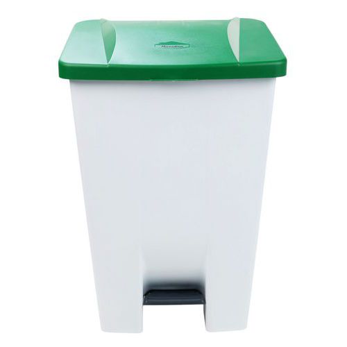 Plastikowe kosze na śmieci z kolorowymi pokrywami, do użytku w pomieszczeniach zakładów spożywczych. Kosze posiadają dwa kółka i uchwyt na tylnej stronie. Higieniczne otwieranie pokrywa dzięki systemowi pedałowemu na przedniej stronie kosza.