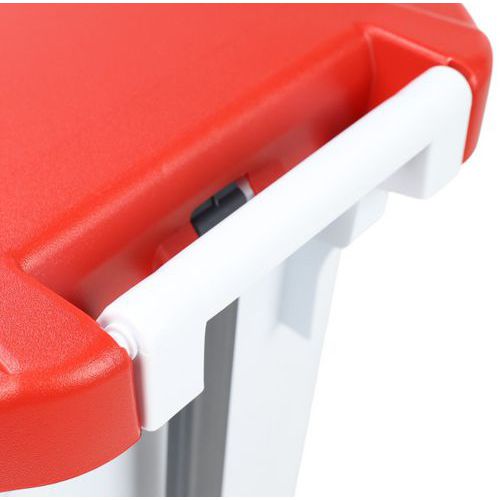 Plastikowy kosz na śmieci Manutan Expert, pojemność 60 l, biały/czerwony Plastikowy kosz na śmieci Manutan Expert, pojemność 60 l, biały/czerwony