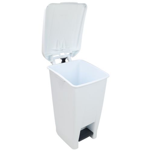 Plastikowe kosze pedałowe z kolorowymi pokrywami, nadają się do użytku w pomieszczeniach zakładów spożywczych. Kosze są wyposażone w dwa plastikowe kółka. Otwieranie kosza możliwe dzięki systemowi pedałowemu na przedniej stronie. Gwarancja producenta dla klienta : 10 lat System HACCP
