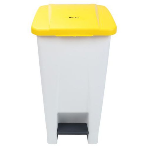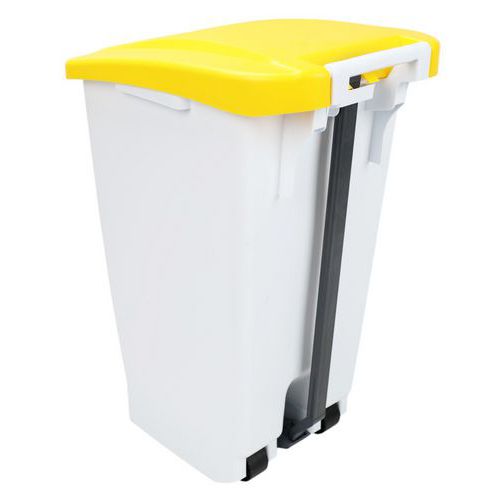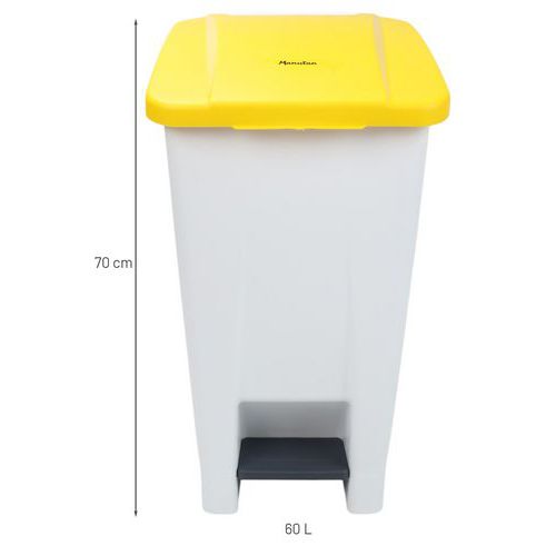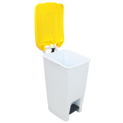 Plastikowy kosz na śmieci Manutan Expert, pojemność 60 l, biały/żółty Plastikowy kosz na śmieci Manutan Expert, pojemność 60 l, biały/żółty