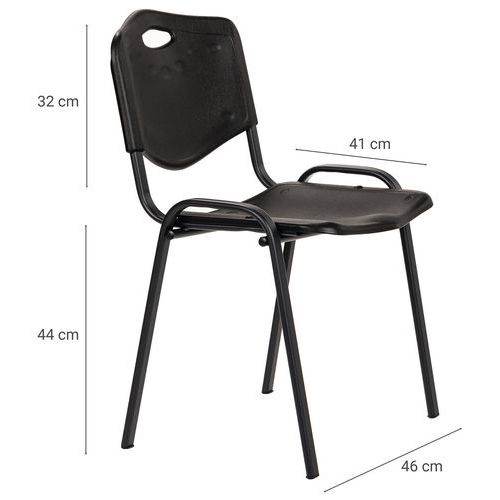 Plastikowe krzesła ISO ze stalową konstrukcją i zmywalną powierzchnią. Można je sztaplować maksymalnie do 10 sztuk. Konstrukcja jest czarna, a oparcie wykonane z polipropylenu o wysokości 33,5 cm. Nogi mają plastikowe zaślepki z matowym wykończeniem malowanym proszkowo. Krzesła te są odpowiednie do środowisk, w których ważna jest łatwość konserwacji.