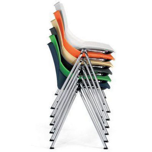 - Nowoczesne krzesła plastikowe o kształcie przypominającym muszelkę są przeznaczone przede wszystkim do kuchni. Nogi krzeseł do jadalni tworzą cienkościenne chromowane rurki o przekroju okrągłym. Nogi krzeseł kuchennych zakończono zaślepkami z czarnego plastiku. Zaletą tych designerskich krzeseł jest możliwość układania w stosy do maks. 10 szt. Dostępne w sześciu wariantach kolorystycznych. Nośność krzesła wynosi 100 kg.