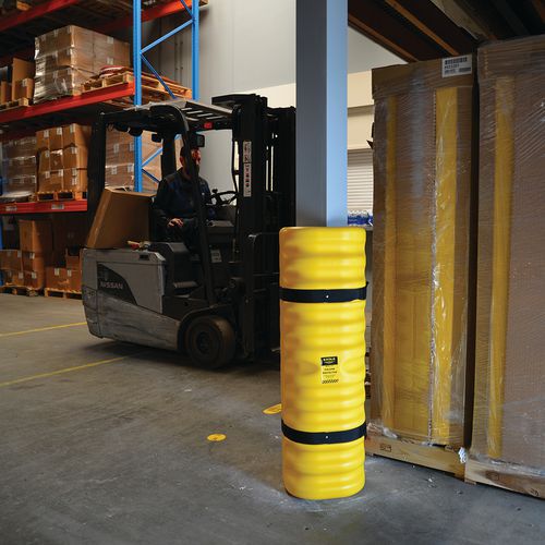 - Absorbuje uderzenia wózków widłowych, minimalizując uszkodzenia słupów, wózków widłowych i obrażenia personelu.