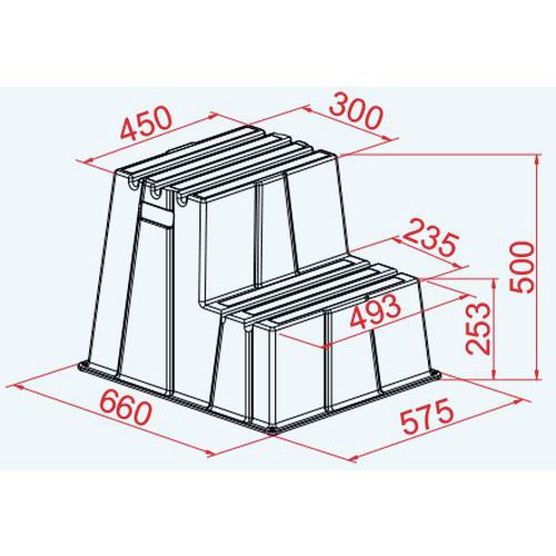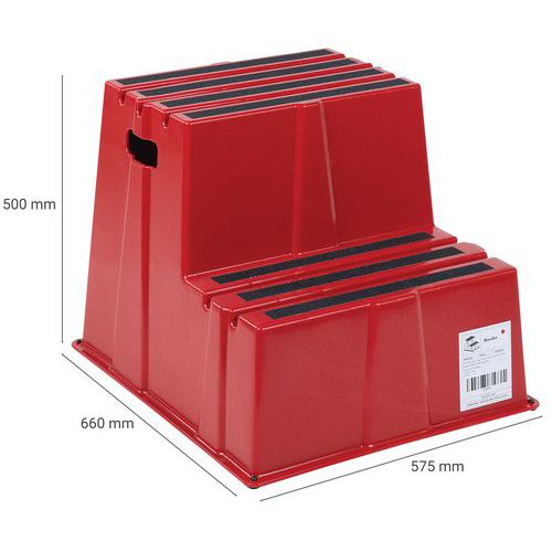 Plastikowy podest roboczy Manutan Expert, czerwony, 2 stopnie Plastikowy podest roboczy Manutan Expert, czerwony, 2 stopnie
