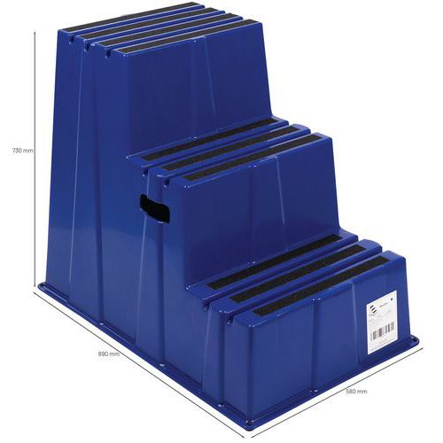 Plastikowy podest roboczy Manutan Expert, niebieski, 3 stopnie Plastikowy podest roboczy Manutan Expert, niebieski, 3 stopnie