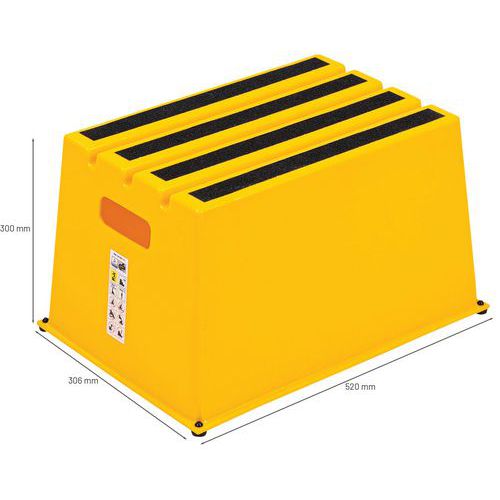 Szerokie podesty robocze z gumowymi stopkami zapewniającymi lepszą stabilność. Stopnie posiadają paski ścierne obniżające ryzyko upadku z podestu. Łatwe przemieszczanie dzięki niskiej wadze i zaczepom bocznym. Gwarancja producenta dla klienta : 10 lat Maks. obciążenie (kg) : 230