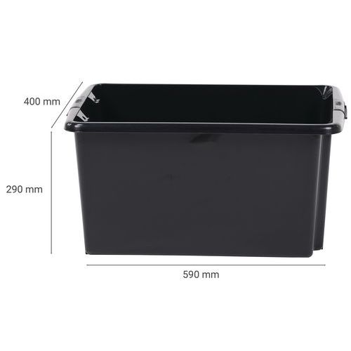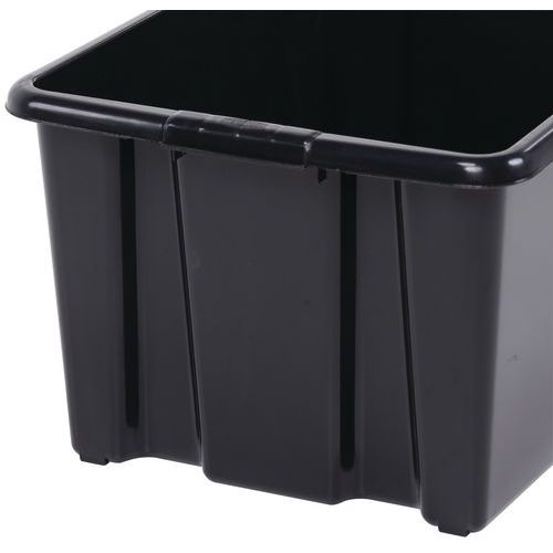 Czarne pojemniki do przechowywania lub transportu przedmiotów, dokumentów czy towaru. Wykonane z polipropylenu podlegającego recyklingowi. Możliwość sztaplowania większej liczby pojemników. Gwarancja producenta dla klienta : 10 lat