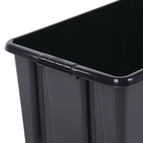 Czarne pojemniki do przechowywania lub transportu przedmiotów, dokumentów czy towaru. Wykonane z polipropylenu podlegającego recyklingowi. Możliwość sztaplowania większej liczby pojemników.