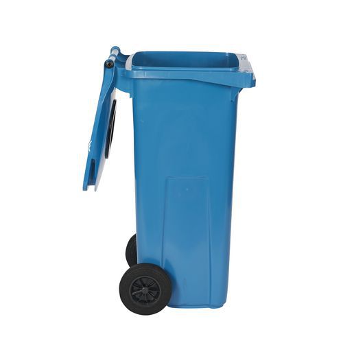 Plastikowy kosz na odpady segregowane zewnętrzny, z otworem, pojemność 120 l, niebieski