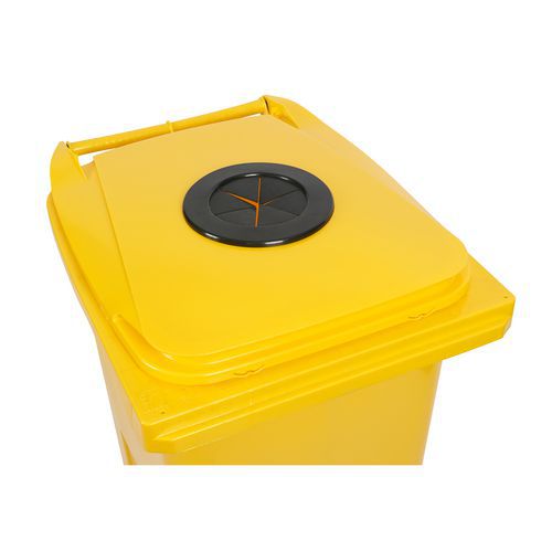 Plastikowe pojemniki na odpady segregowane, zewnętrzne, z otworem, pojemność 240 l