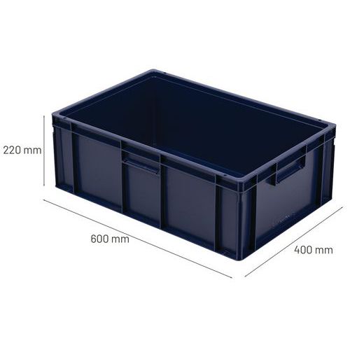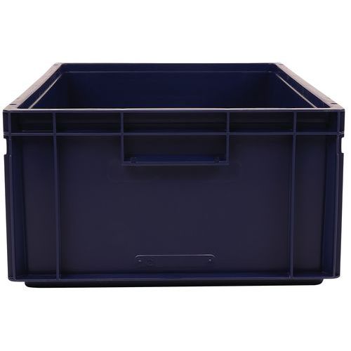 Polipropylenowe pojemniki transportowe z możliwością sztaplowania i pełnym dnem oraz ścianami są kompatybilne z europaletami. Zamknięte uchwyty ułatwiające manewrowanie. Wysoka stabilność w przypadku sztaplowania. Odporne na działanie olejów, tłuszczów i wielu rodzajów substancji chemicznych. Nadają się do różnych środowisk oraz warunków klimatycznych (np. przemysł spożywczy).