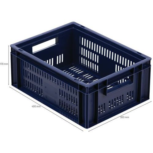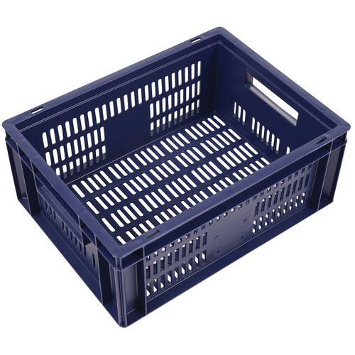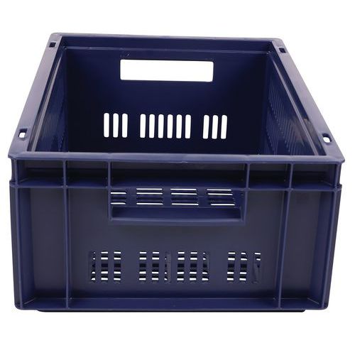 Polipropylenowe pojemniki transportowe z możliwością sztaplowania i perforowanym dnem oraz ścianami są kompatybilne z europaletami. Otwarte uchwyty ułatwiające manewrowanie. Wysoka stabilność w przypadku sztaplowania. Odporne na działanie olejów, tłuszczów i wielu rodzajów substancji chemicznych. Nadają się do różnych środowisk oraz warunków klimatycznych (np. przemysł spożywczy).