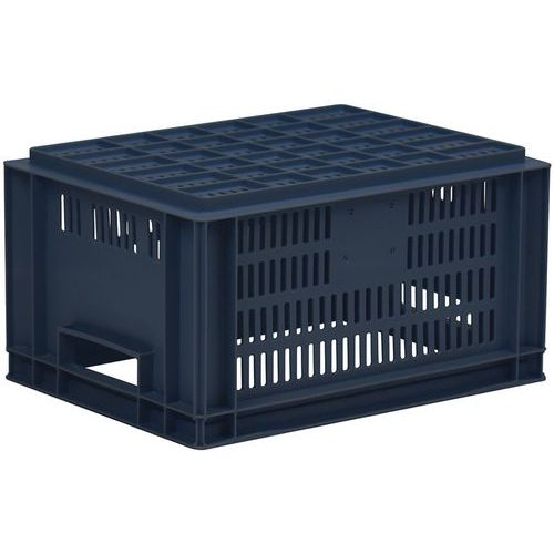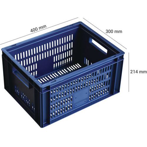 Polipropylenowe pojemniki transportowe z możliwością sztaplowania i perforowanym dnem oraz ścianami są kompatybilne z europaletami. Otwarte uchwyty ułatwiające manewrowanie. Wysoka stabilność w przypadku sztaplowania. Odporne na działanie olejów, tłuszczów i wielu rodzajów substancji chemicznych. Nadają się do różnych środowisk oraz warunków klimatycznych (np. przemysł spożywczy).