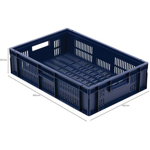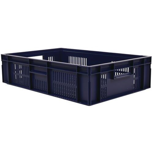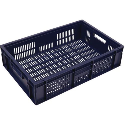 Polipropylenowe pojemniki transportowe z możliwością sztaplowania i perforowanym dnem oraz ścianami są kompatybilne z europaletami. Otwarte uchwyty ułatwiające manewrowanie. Wysoka stabilność w przypadku sztaplowania. Odporne na działanie olejów, tłuszczów i wielu rodzajów substancji chemicznych. Nadają się do różnych środowisk oraz warunków klimatycznych (np. przemysł spożywczy).
