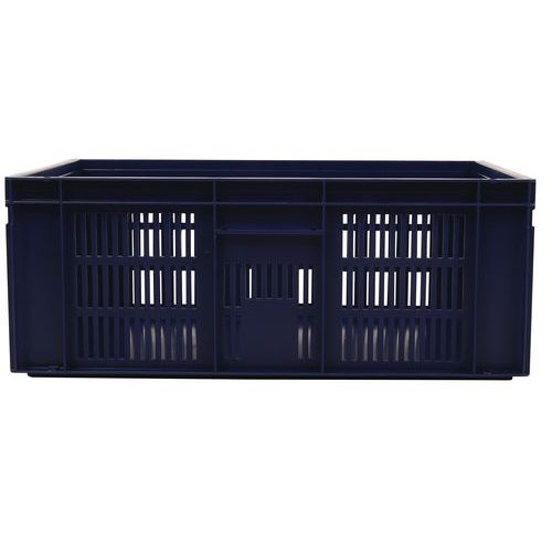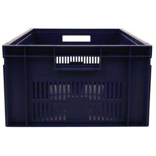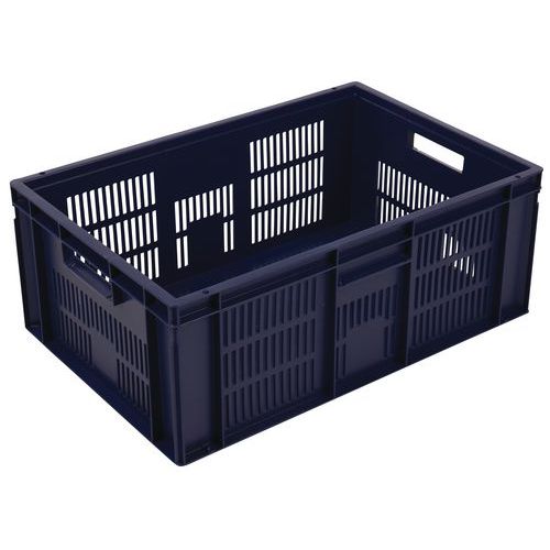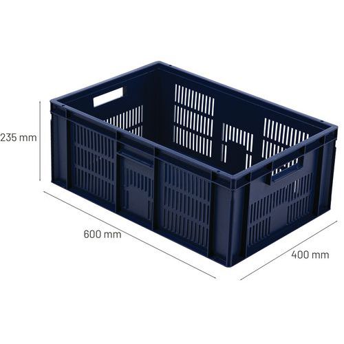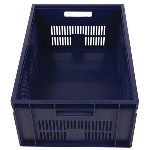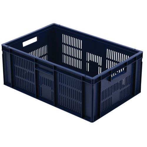 Polipropylenowe pojemniki transportowe z możliwością sztaplowania i pełnym dnem oraz perforowanymi ścianami, są kompatybilne z europaletami. Otwarte uchwyty ułatwiające manewrowanie. Wysoka stabilność w przypadku sztaplowania. Odporne na działanie olejów, tłuszczów i wielu rodzajów substancji chemicznych. Nadają się do różnych środowisk oraz warunków klimatycznych (np. przemysł spożywczy).