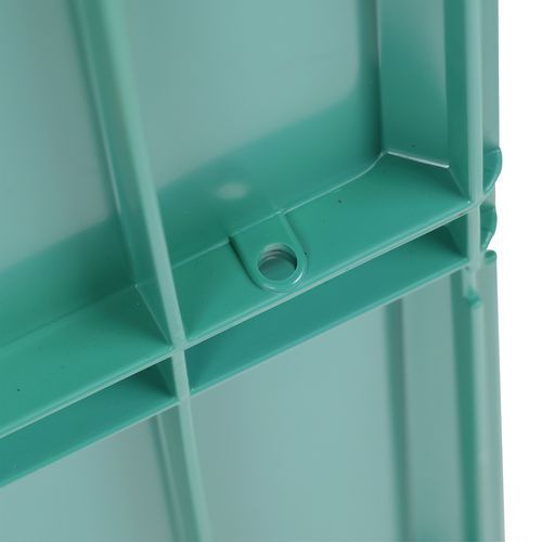 Bardzo wytrzymałe skrzynki plastikowe do układania w stosy w kolorze zielonym. Wysoka stabilność podczas układania w stosy dzięki wzmocnionym krawędziom.