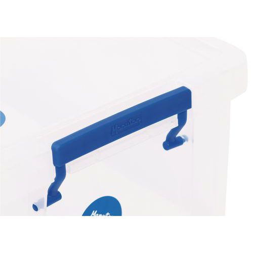 Plastikowe skrzynki magazynowe z pokrywą na klips Manutan Expert, 10 l Plastikowe skrzynki magazynowe z pokrywą na klips Manutan Expert, 10 l