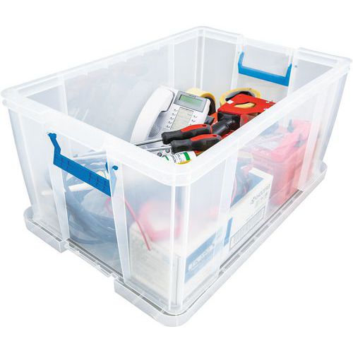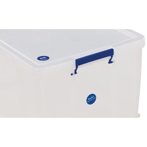 Plastikowe skrzynki magazynowe z pokrywą na klips Manutan Expert, 70 l Plastikowe skrzynki magazynowe z pokrywą na klips Manutan Expert, 70 l