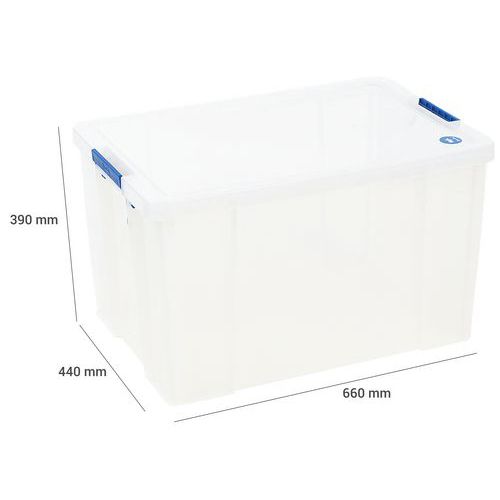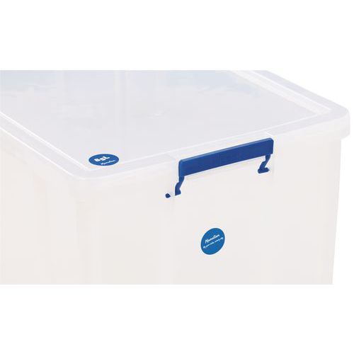 Plastikowe skrzynki magazynowe z pokrywą na klips Manutan Expert, 85 l Plastikowe skrzynki magazynowe z pokrywą na klips Manutan Expert, 85 l
