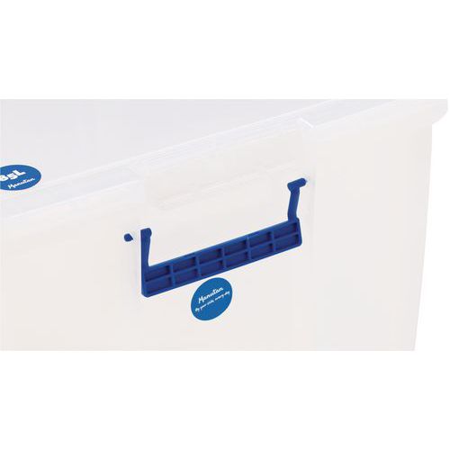 Plastikowe skrzynki magazynowe do zastosowań uniwersalnych. Przezroczyste wykonanie pozwala na wgląd w przechowywane przedmioty bez konieczności otwierania. Poręcze służą również jako klips do zamykania pudeł. Łatwe przechowywanie, skrzynki można układać na sobie. Certyfikacja NSF Maks. obciążenie (kg) : 200 kg
