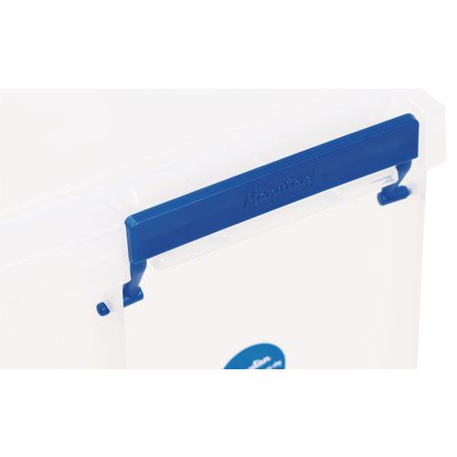 Plastikowe skrzynki magazynowe z pokrywą na klips Manutan Expert