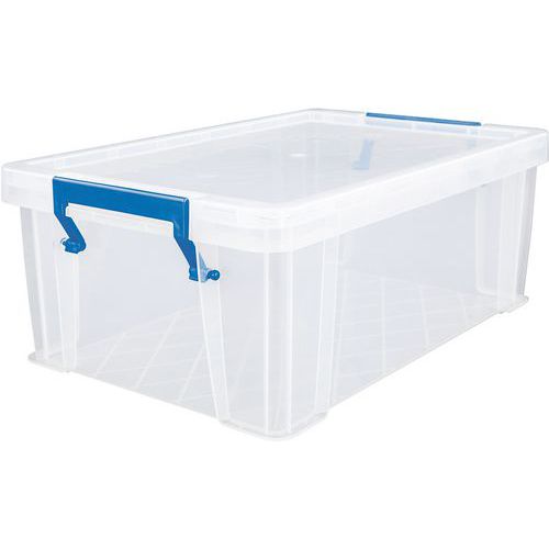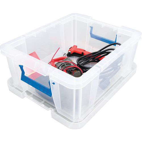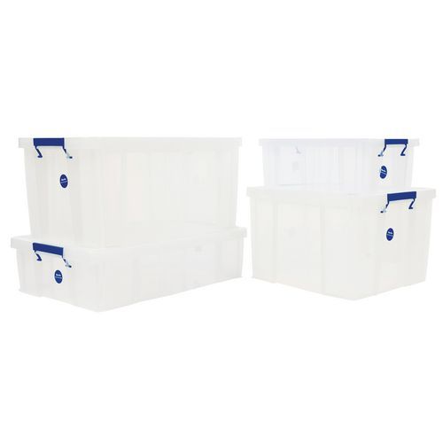 Plastikowe skrzynki magazynowe do zastosowań uniwersalnych. Przezroczyste wykonanie pozwala na wgląd w przechowywane przedmioty bez konieczności otwierania. Poręcze służą również jako klips do zamykania pudeł. Łatwe przechowywanie, skrzynki można układać na sobie.