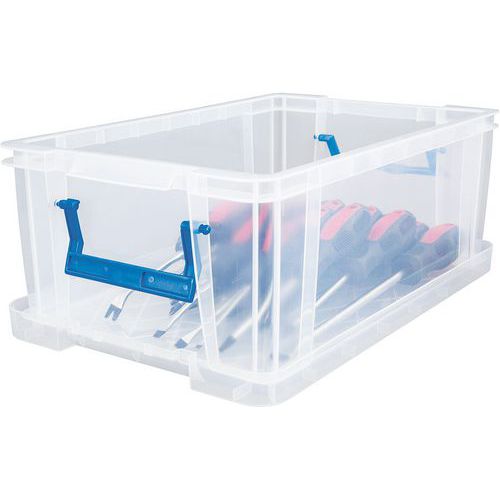 Plastikowe skrzynki magazynowe do zastosowań uniwersalnych. Przezroczyste wykonanie pozwala na wgląd w przechowywane przedmioty bez konieczności otwierania. Poręcze służą również jako klips do zamykania pudeł. Łatwe przechowywanie, skrzynki można układać na sobie. Maks. obciążenie (kg) : 200 Certyfikacja NSF