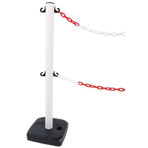 Łańcuch można przechowywać wewnątrz słupka.Podstawę można napełnić wodą lub piaskiem w celu zapewnienia większej stabilności (waga słupka wzrośnie w związku z tym z 1,3 kg do 3,5 kg).