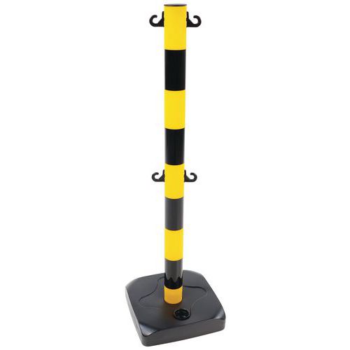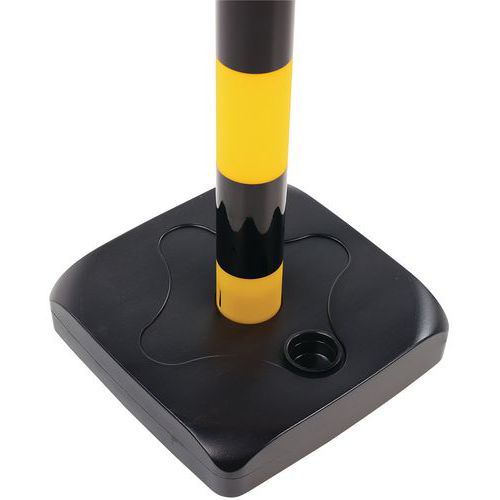 Łańcuch można przechowywać wewnątrz słupka.Podstawę można napełnić wodą lub piaskiem w celu zapewnienia większej stabilności (waga słupka wzrośnie w związku z tym z 1,3 kg do 3,5 kg).