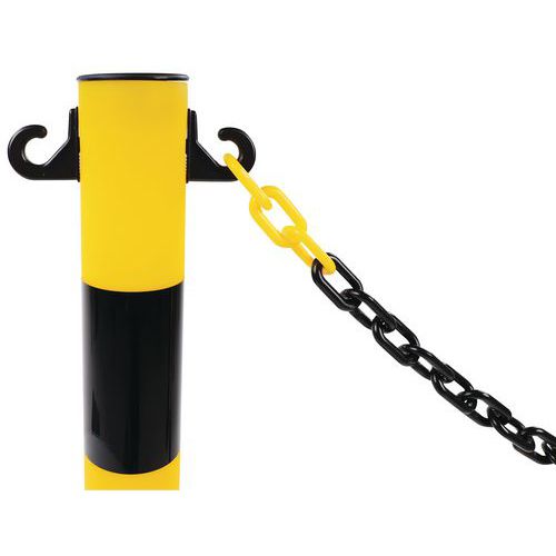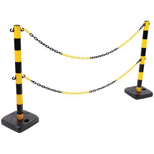Plastikowe słupki odgradzające Manutan Expert z łańcuchem, wysokość 90 cm, 6 szt., czarne/żółte