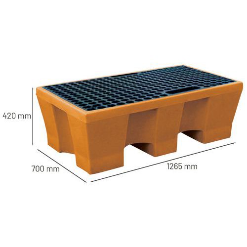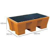 Plastikowa wanna ociekowa Manutan Expert z plastikowym rusztem, na 2 beczki, pojemność 240 l Plastikowa wanna ociekowa Manutan Expert z plastikowym rusztem, na 2 beczki, pojemność 240 l