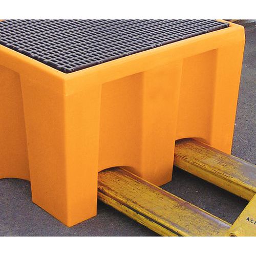 Plastikowe wanny wychwytowe z plastikowym lub ocynkowanym rusztem. Wykonane z polietylenu i przeznaczone do przechowywania substancji zagrażających wodzie. Odporne na znaczne obciążenia mechaniczne, korozję i większość chemikaliów. Stabilne pod względem kształtu, możliwość manewrowania za pomocą wózków paletowych i widłowych.