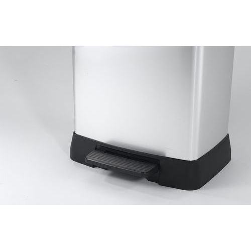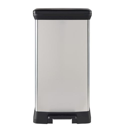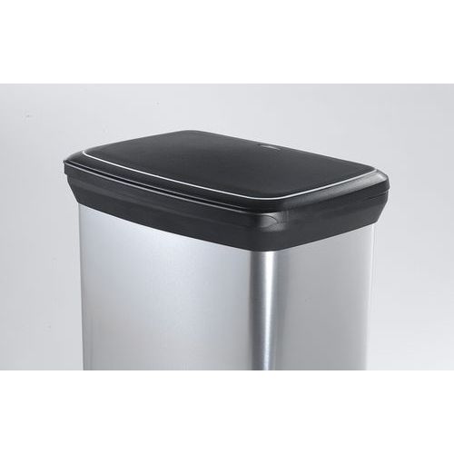 Kosz pedałowy z plastiku, z metalizowaną powierzchnią. Nadaje się do biura i domu. Kosz otwierany nogą za pomocą pedału. Zintegrowany uchwyt na worki na śmieci. Ciche zamykanie Soft Close. Łatwa konserwacja.