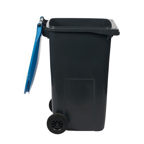 Plastikowy kosz na odpady segregowane, zewnętrzny, pojemność 240 l, czarny/niebieski