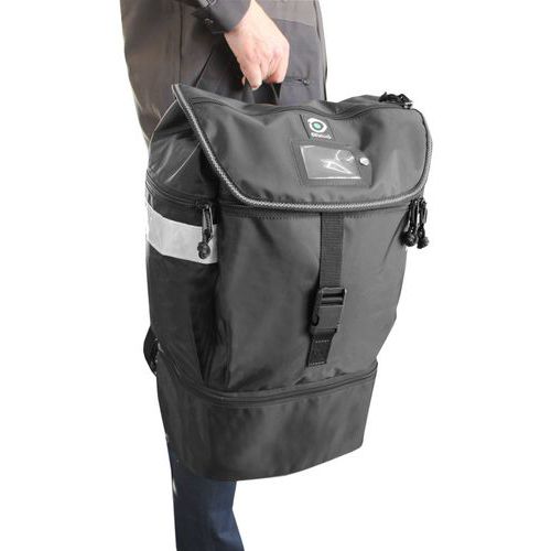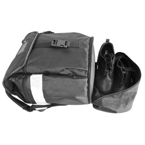 Plecak z przegródką na buty pod torbą, przeznaczony do przechowywania i transportu wszelkich środków ochrony osobistej. Praktyczny, z wydzielonym miejscem na każdy środek ochrony indywidualnej: centralna kieszeń na kask, kieszenie boczne i przednia kieszeń na rękawiczki itp. Łatwe do przenoszenia jako plecak lub za pomocą centralnego uchwytu. Zamknięcie środkowej kieszeni zapewnia wodoodporność torby.