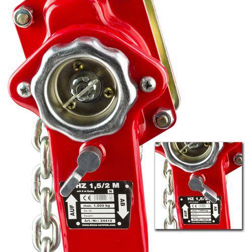 | Nazwa produktu | Podnośnik grzechotkowy z łańcuchem ogniwowym, do 1 500 kg, 2 000 mm |