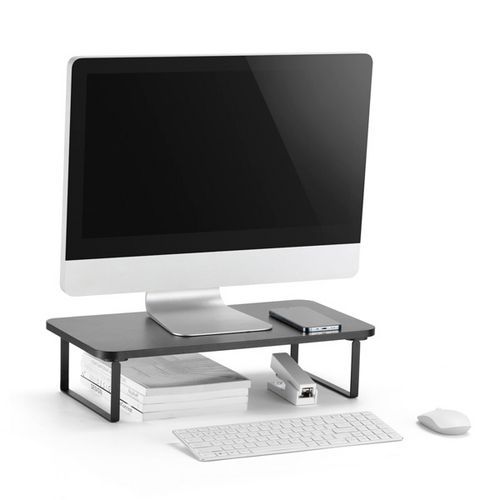 - Czarna podstawka pod monitor z płyty wiórowej.
