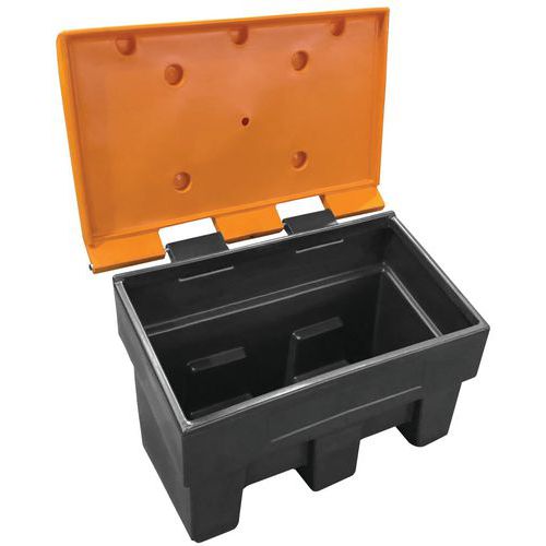 - Plastikowy kontener na materiał do posypywania dróg w ziemie, na sól i żwir.