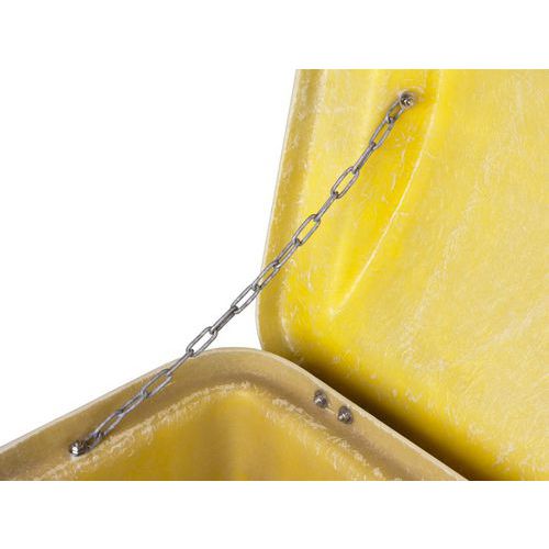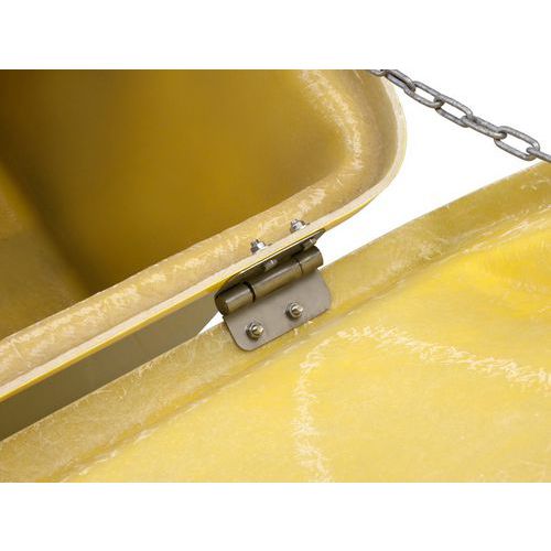 Kontenery sztaplowane z włókna szklanego, do przechowywania materiałów do posypywania dróg. Przeznaczone do użytku w okresie zimowym na często uczęszczanych i stwarzających zagrożenie odcinkach dróg i chodników przy szkołach, centrach handlowych, przystankach itp. Możliwość zamocowania w podłożu. kolor: zielony, żółty, szary, pomarańczowy, biały kolor pokrywy: zielony, żółty, szary, pomarańczowy pojemność: 220 l materiał: włókno szklane wymiary: wys. x szer. x gł.: 70 x 90 x 60 cm odporność cieplna: od -40 do 40 °C masa: 15 kg mocowanie zapobiegające kradzieży, sztaplowalne, możliwość dostosowania do pracy z wózkiem widłowym — za dopłatą możliwość zamknięcia za dopłatą