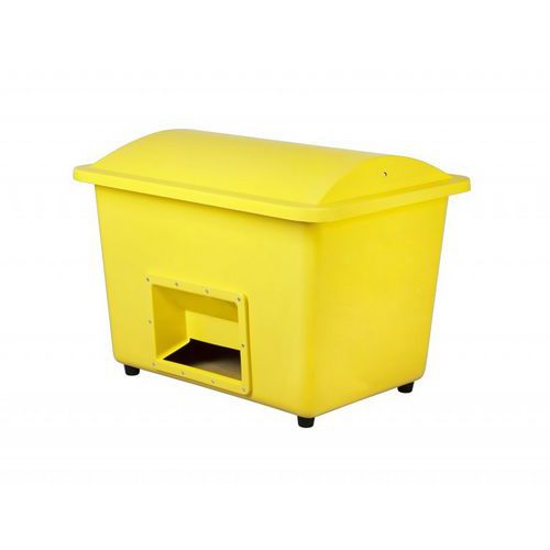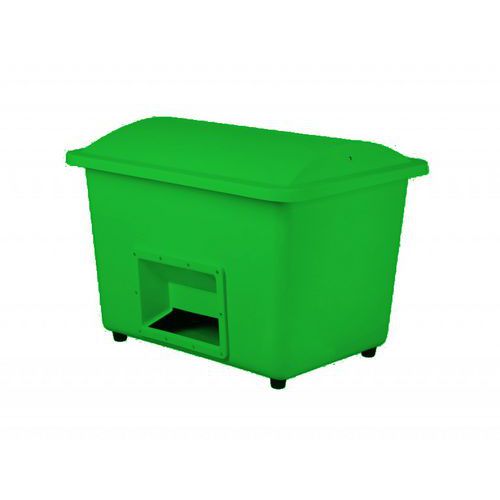 Kontenery sztaplowane z włókna szklanego, do przechowywania materiałów do posypywania dróg. Przeznaczone do użytku w okresie zimowym na często uczęszczanych i stwarzających zagrożenie odcinkach dróg i chodników przy szkołach, centrach handlowych, przystankach itp. Możliwość zamocowania w podłożu. kolor: zielony, żółty, szary, pomarańczowy, biały kolor pokrywy: zielony, żółty, szary, pomarańczowy pojemność: 750 l materiał: włókno szklane wymiary: wys. x szer. x gł.: 100 x 135 x 100 cm odporność cieplna: od -40 do 40 °C masa: 30 kg mocowanie zapobiegające kradzieży, sztaplowalne, możliwość dostosowania do pracy z wózkiem widłowym — za dopłatą możliwość zamknięcia za dopłatą