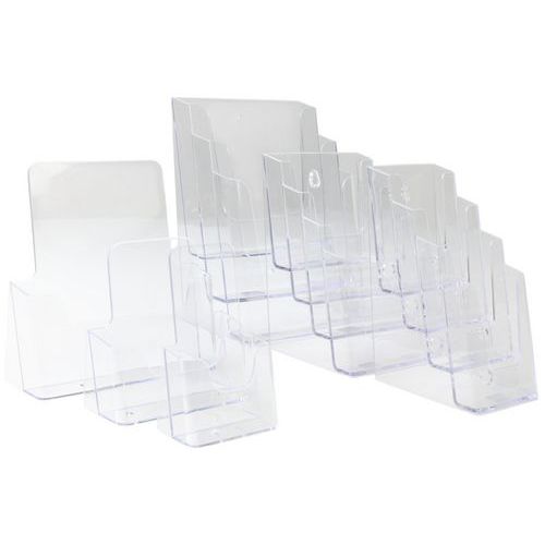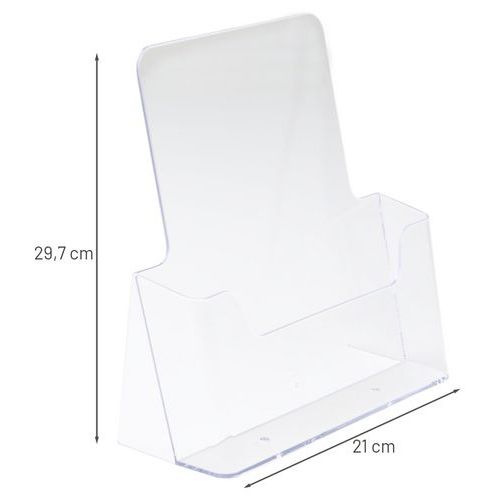 Stojaki pulpitowe do umieszczenia ulotek, broszur reklamowych i innych materiałów promocyjnych. Jedna kieszeń w układzie pionowym.
