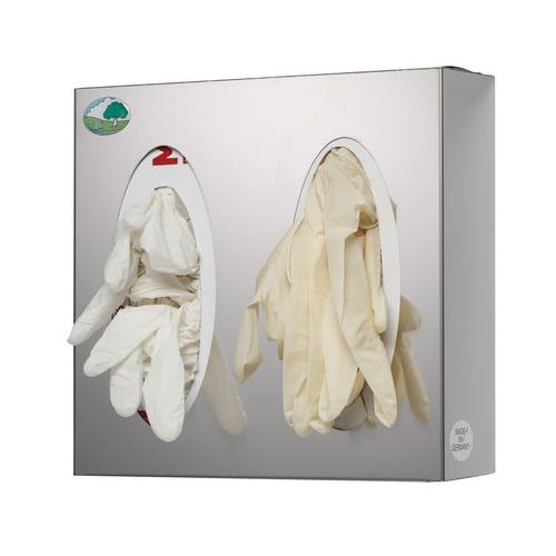 Pojemnik naścienny na pudełka z rękawiczkami i chusteczkami VAR, stal nierdzewna, 2 przegródki